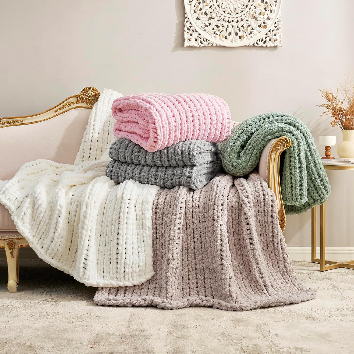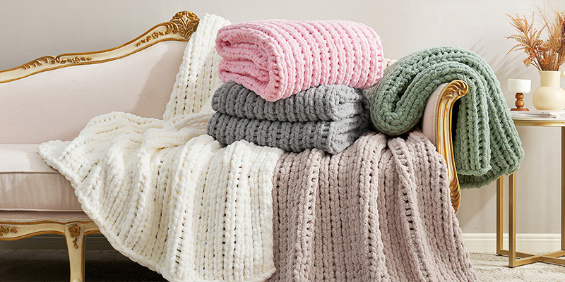 Chenille Hand-Knitted Chunky Yarn Blanket For Home Decor
